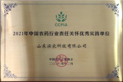 2021年12月,我公司獲評“2021年中國農藥行業責任關懷優秀實踐單位”。