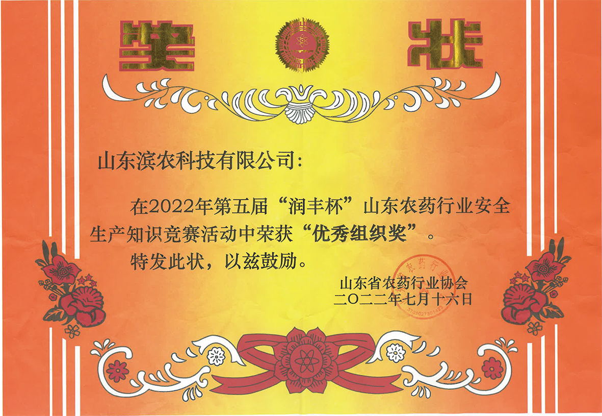 ■2022-08-30 我公司榮獲第五屆“潤豐杯”山東農(nóng)藥行業(yè)安全生產(chǎn)知識競賽“優(yōu)秀組織獎”