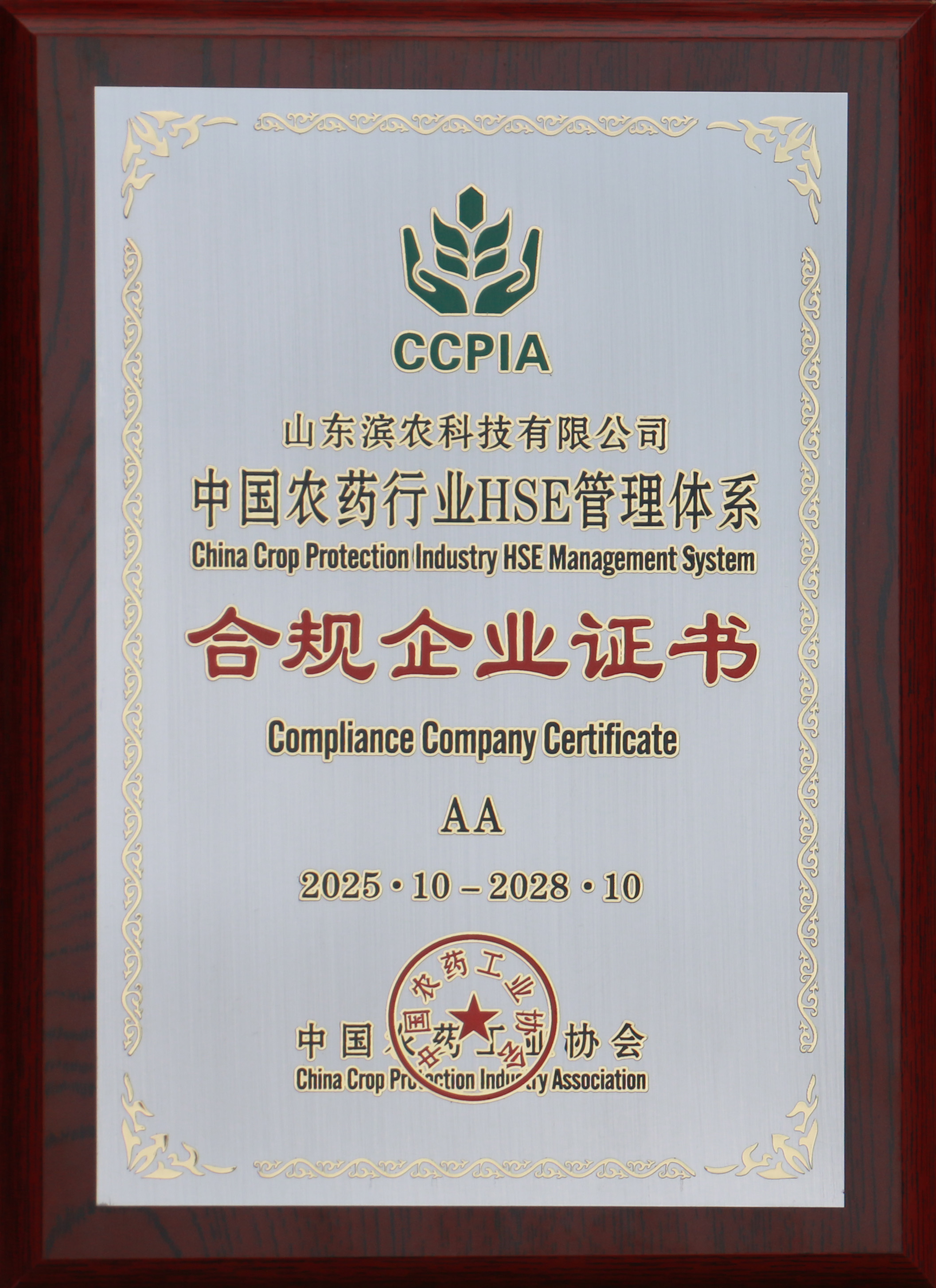 ■2025-11-13 濱農(nóng)科技取得中國農(nóng)藥行業(yè)HSE管理體系合規(guī)企業(yè)AA級(jí)認(rèn)證