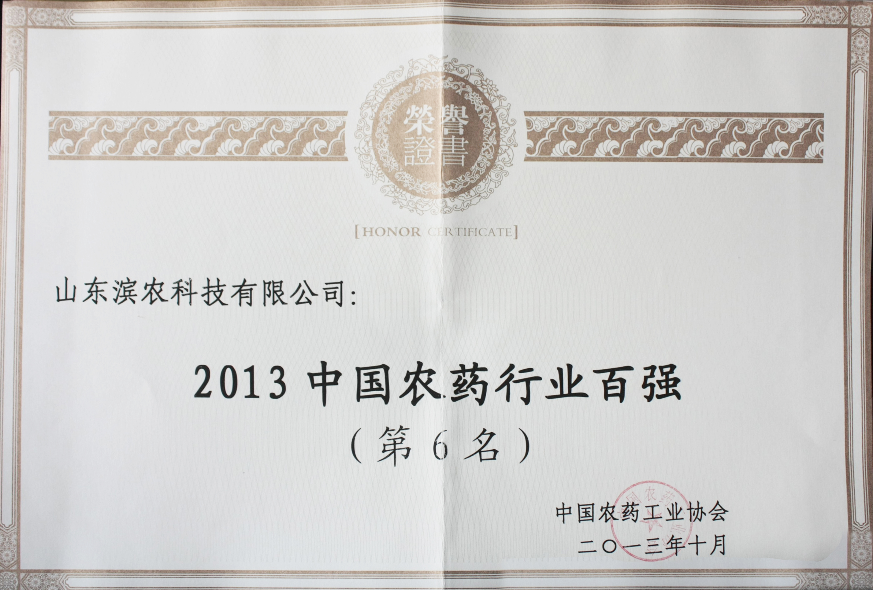 10 月 16 日,在第十三屆全國農藥交流會主題大會上,中國農藥工業協會正式公布 2013 年中國農藥行業百強榜單,我公司以 21.0億元的銷售額位列第六。