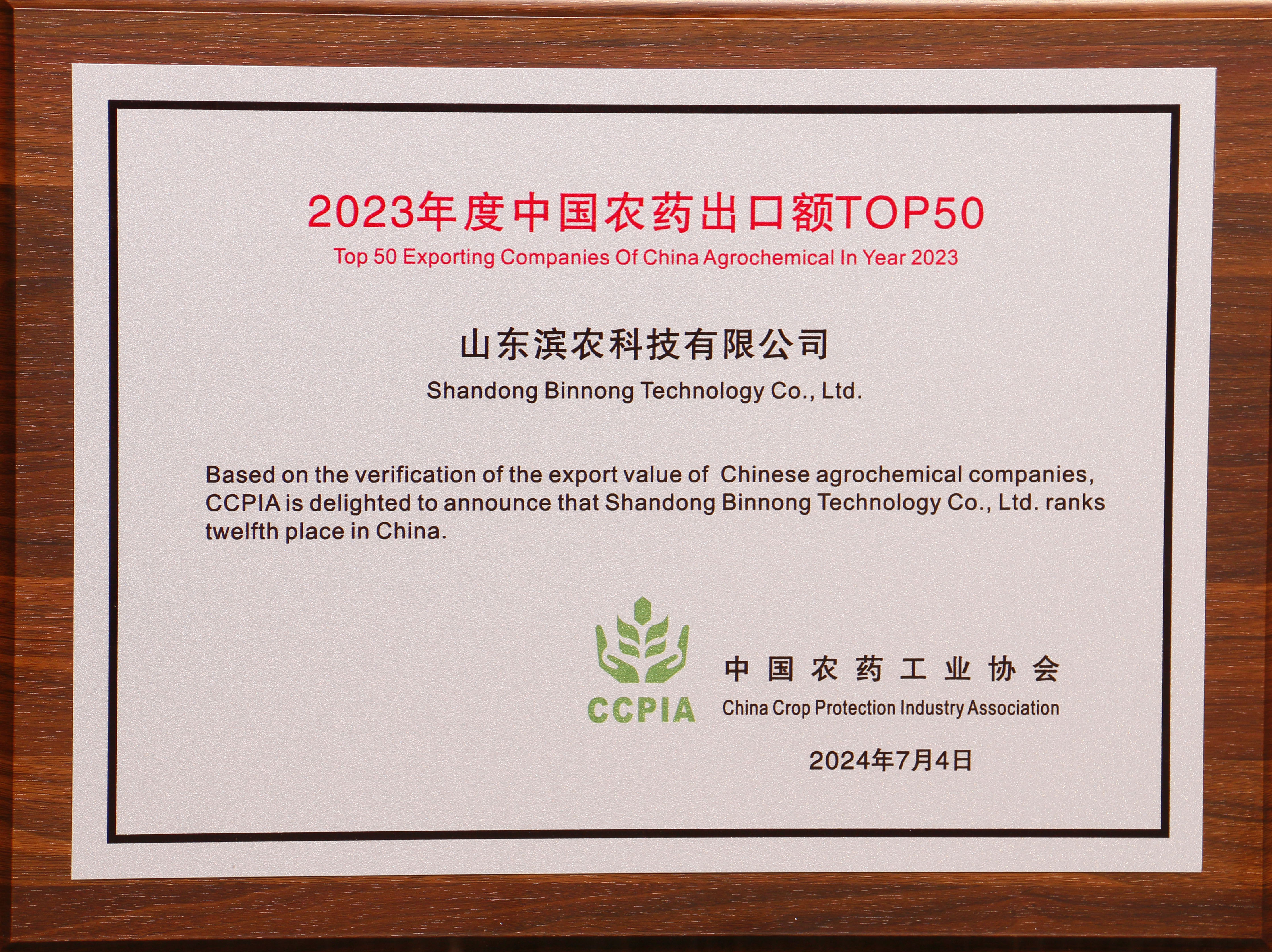 ■2024-07-16 濱農(nóng)科技榮膺2023年度“中國(guó)農(nóng)藥出口額Top 50”第12名