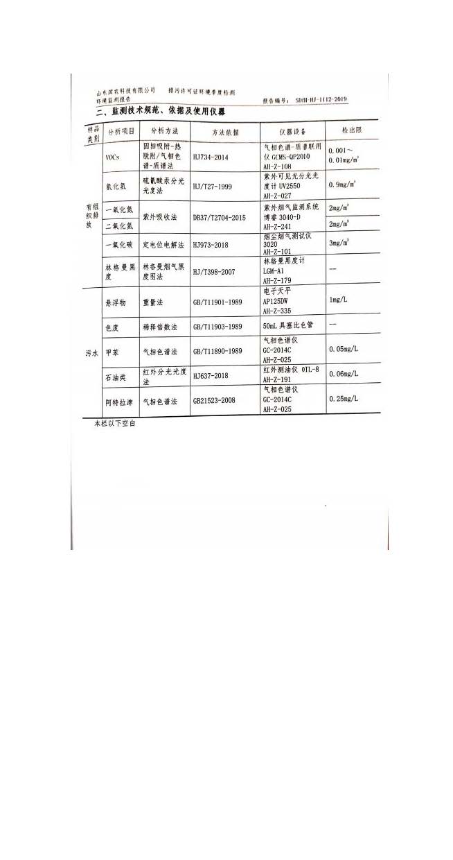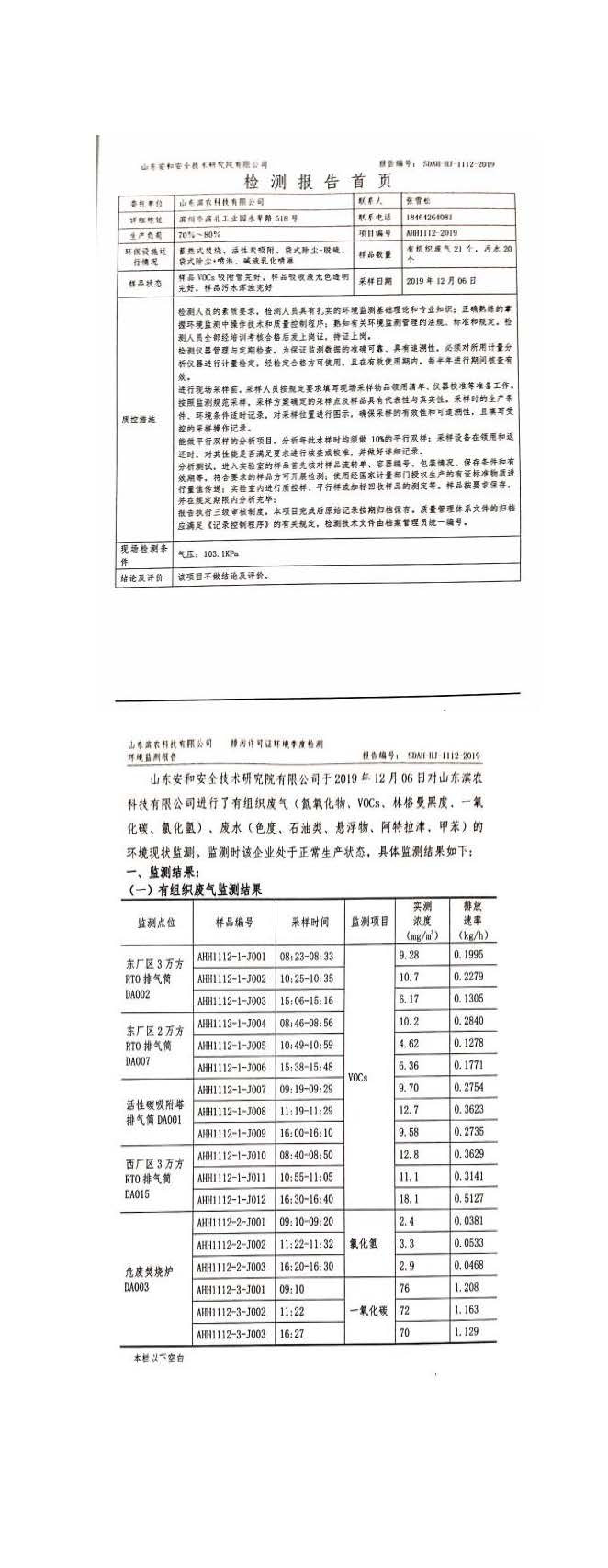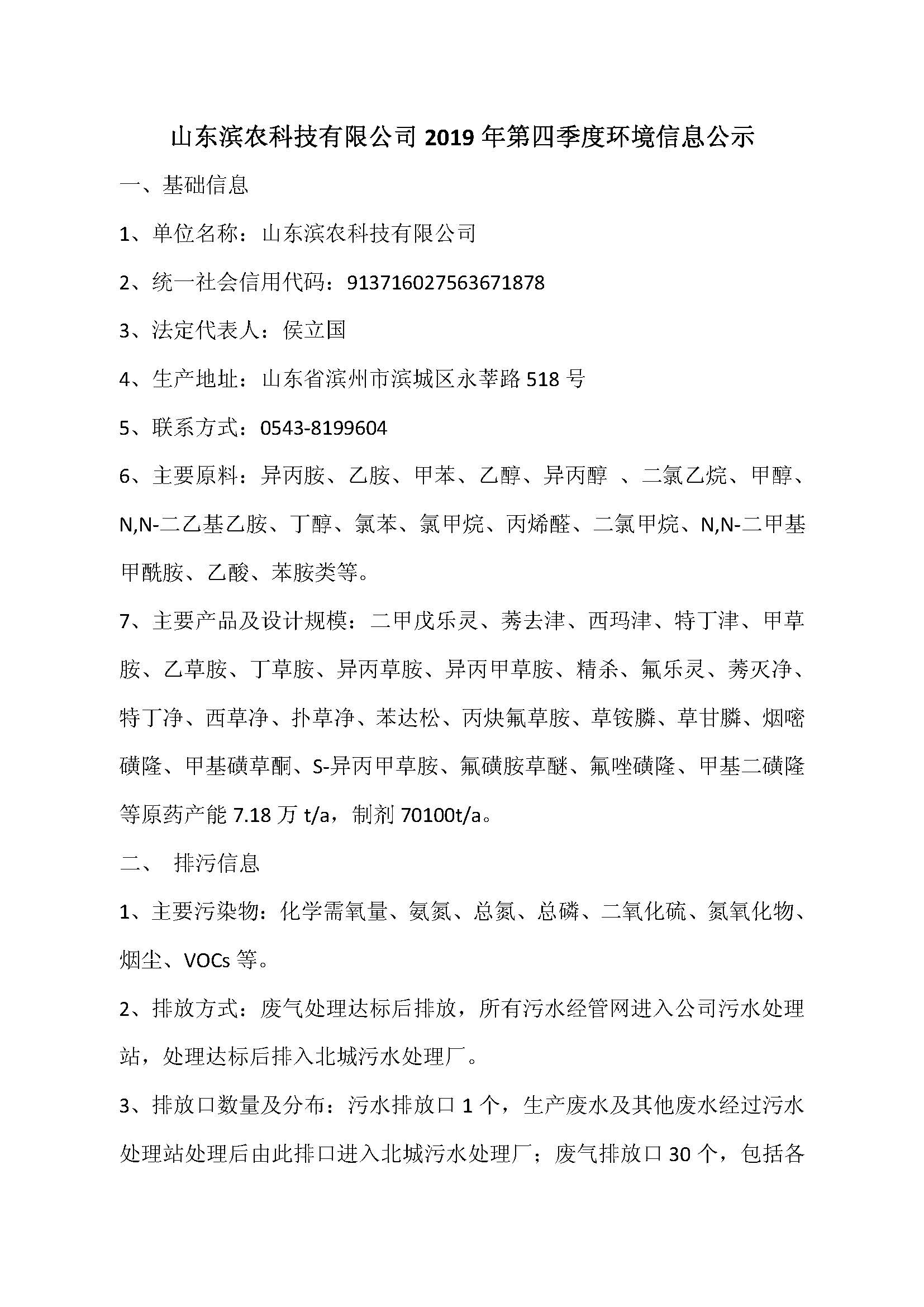 山東濱農科技有限公司2019 年第四季度環境信息公示