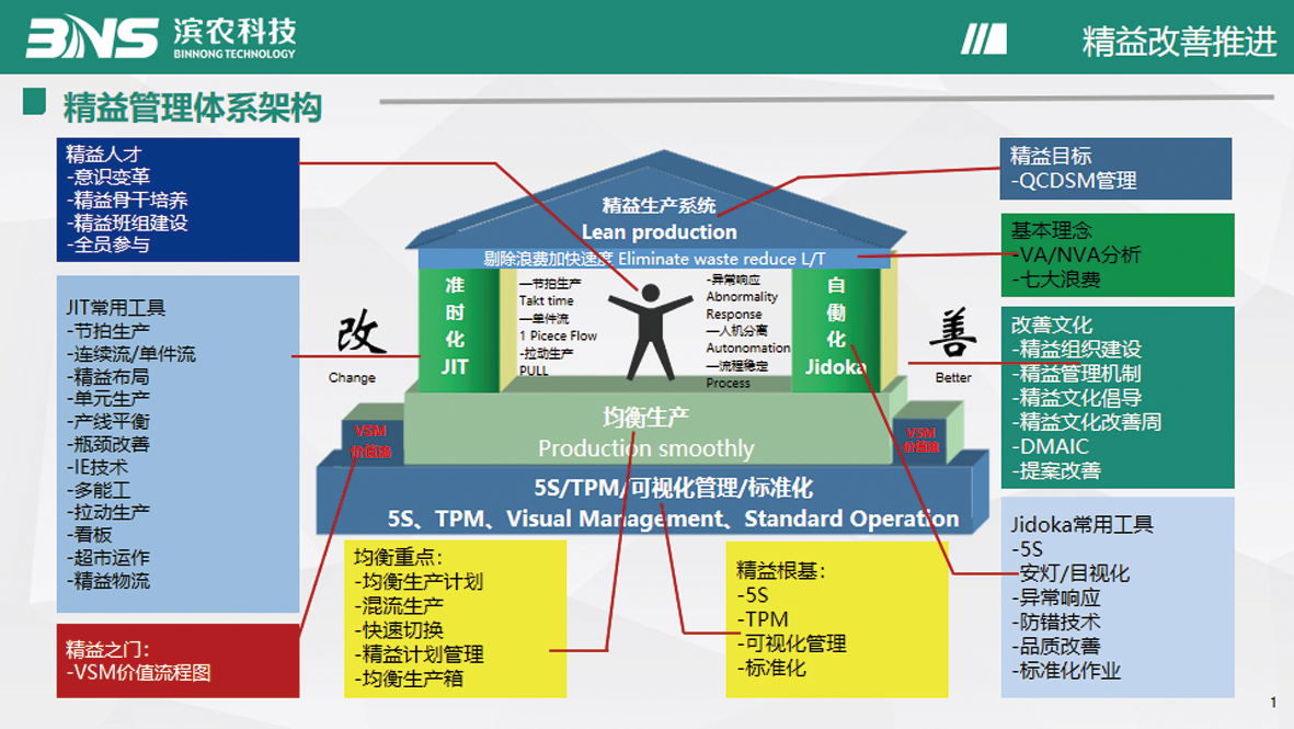 精益的標準定義是消滅一切浪費,加快流程速度,為利益相關者創造價值。同時要運用好精益管理的改善工具。運用5S、TPM、可視化管理與標準化類基礎管理工具要做到:一是看得到的現場變化;二是感受到的人員變化;三是計算到的績效變化。