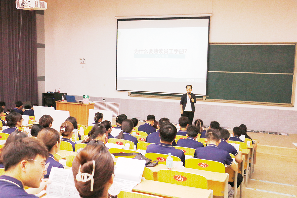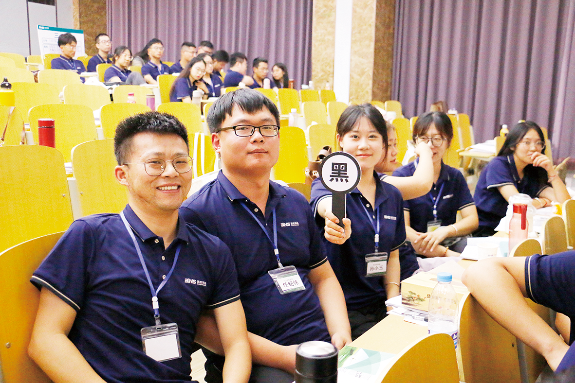 煥新開營,萌新登場。開營儀式上,通過預訓分組、發放營服等,學員們組成了八支團結緊張、嚴肅活潑的學習團隊。集團培訓及企業文化部主任戚哲芬組織的企業文化知識小組互測互評活動作為集訓的開篇,讓同學們迅速破冰,以飽滿的狀態投入培訓。班主任楊霖就為期五天的課程安排、班級秩序及培訓紀律做了講解。董事長李華出席了本次開營儀式并致詞,李總從小游戲“尋人啟事”入手,既幽默新穎又富含啟發,寄語新員工要“尋路啟悟”,實現個人與企業、行業的協同性上進。