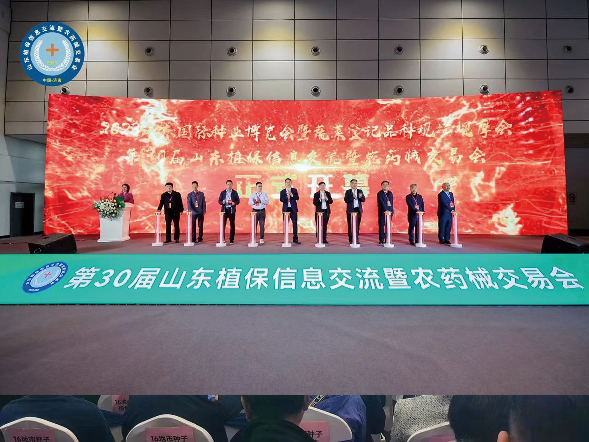 10月23-24日,第三十屆山東省植保信息交流暨農藥(械)交易會在山東國際會展中心舉辦,來自全國各地的農產品及農業產業化紛紛亮相展會,我公司副總助理孫永安,作物經理賈少冉、王繼新,銷售五處處長劉俊超及部分市場一線業務經理參會。