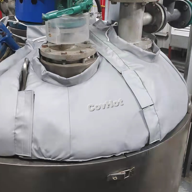 因?yàn)榉忸^部位外形相對(duì)復(fù)雜,而且可能后續(xù)還有拆卸檢修需求,因此封頭部位的保溫就非常重要,柔性可拆卸封頭保溫套通過(guò)對(duì)封頭的具體形狀及其使用環(huán)境,精心設(shè)計(jì),測(cè)繪后,通過(guò)特殊工藝制作而成。通過(guò)對(duì)封頭部位合理的保溫,可以讓設(shè)備整體和工廠環(huán)境保持舒適的溫度。
