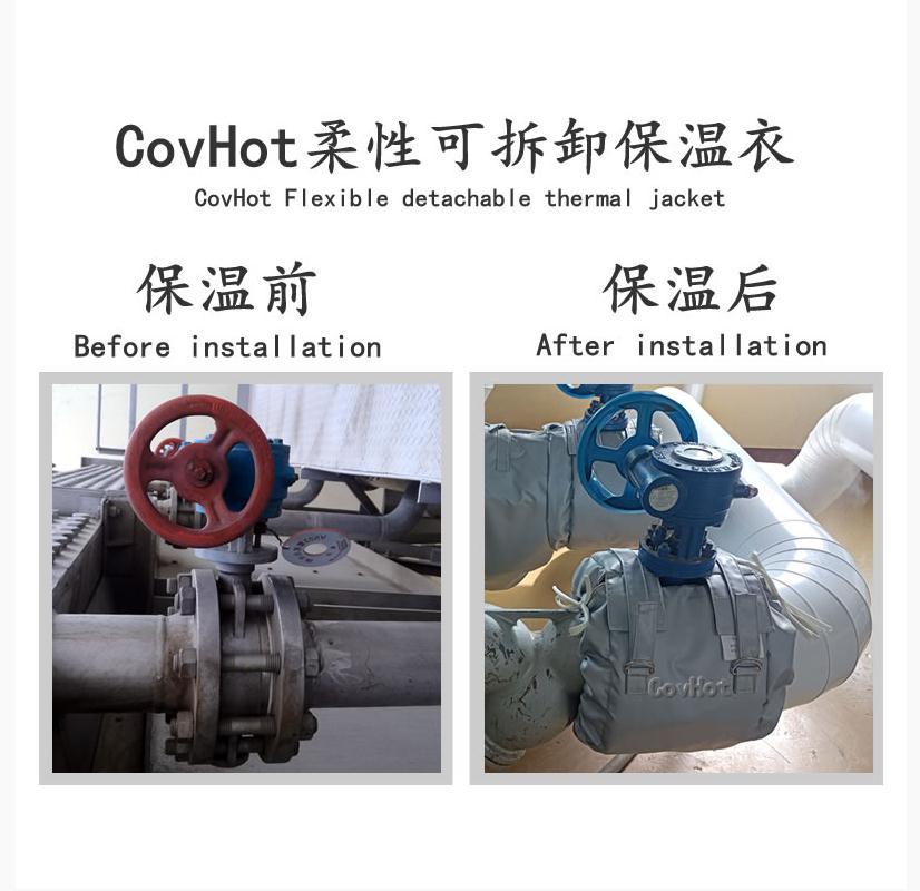 2.化工類:化工廠在日常生產中會頻繁接觸到許多腐蝕性強及溫度高的物質,可拆卸保溫套可以避免設備和人員受到傷害,從而提高生產的安全性和可靠性。