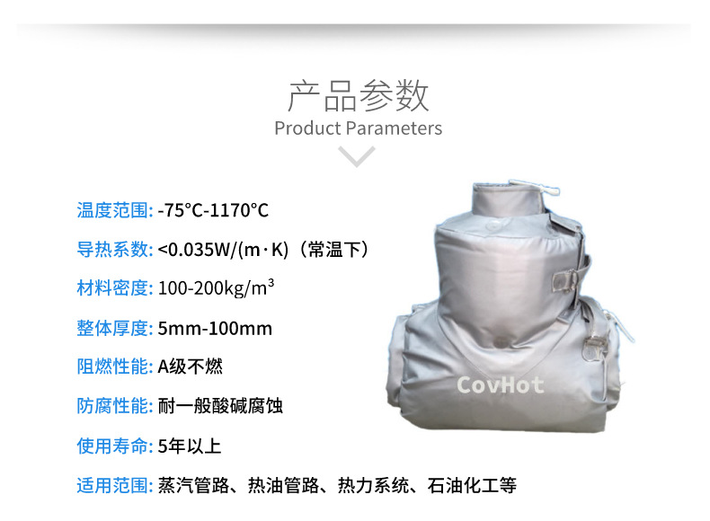 可拆卸截止閥保溫套由保護(hù)層、保溫隔熱層、內(nèi)襯組成、所選用的材料具有柔韌性結(jié)實(shí)無污染,(不含石棉等有害物質(zhì))耐高溫、耐酸堿鹽、防水、抗老化、防火阻燃。是工業(yè)截止閥保溫的好方法之一。