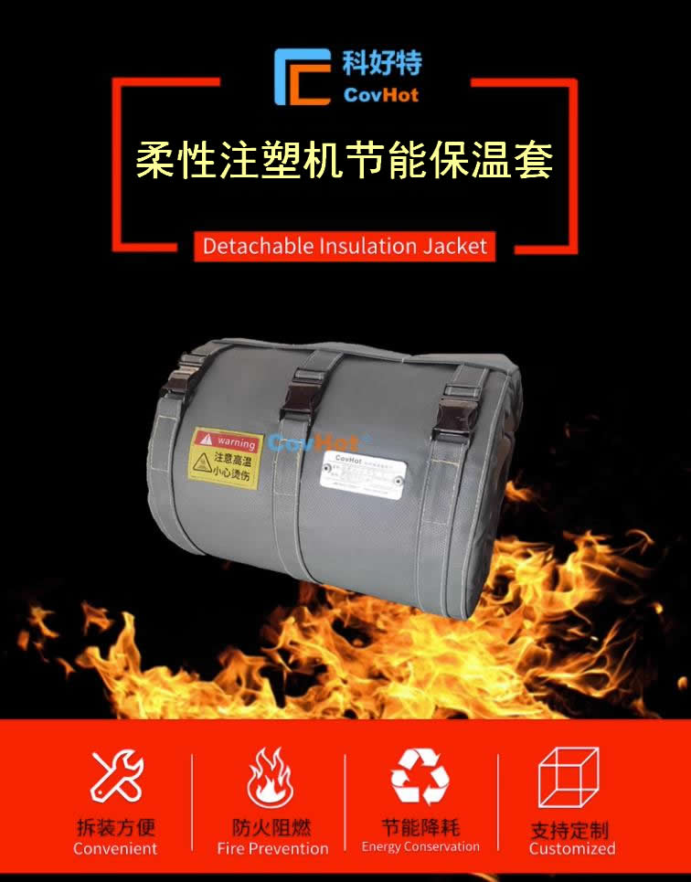 注塑機節能保溫罩涉獵廣泛,能確保不同溫度的設備保溫成效,可根據設備詳細形態量身設計,打造不同形狀、不同功能的設備保溫罩。且保溫罩外表可擦拭,方便拆裝,重復利用率高,可以為企業節省資金,增加利潤空間。