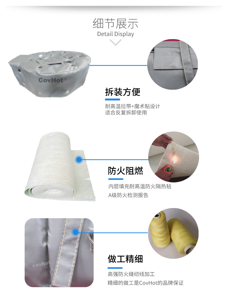 然而,如果選用可拆卸保溫套的話,這些食品生產(chǎn)保溫隔熱工作便不會出現(xiàn)上訴問題。可拆卸保溫套是根據(jù)設備的外形尺寸而量身設計制作的,安裝好后保溫隔熱效果顯著,且美觀大方。可拆卸保溫套屬于柔性制品,通常采用魔術貼或拉帶等方式搭接,具有拆裝便捷,可反復循環(huán)使用等特性。